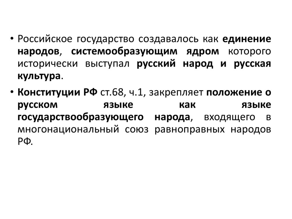 • Российское государство создавалось как единениенародов, системообразующим ядром которого