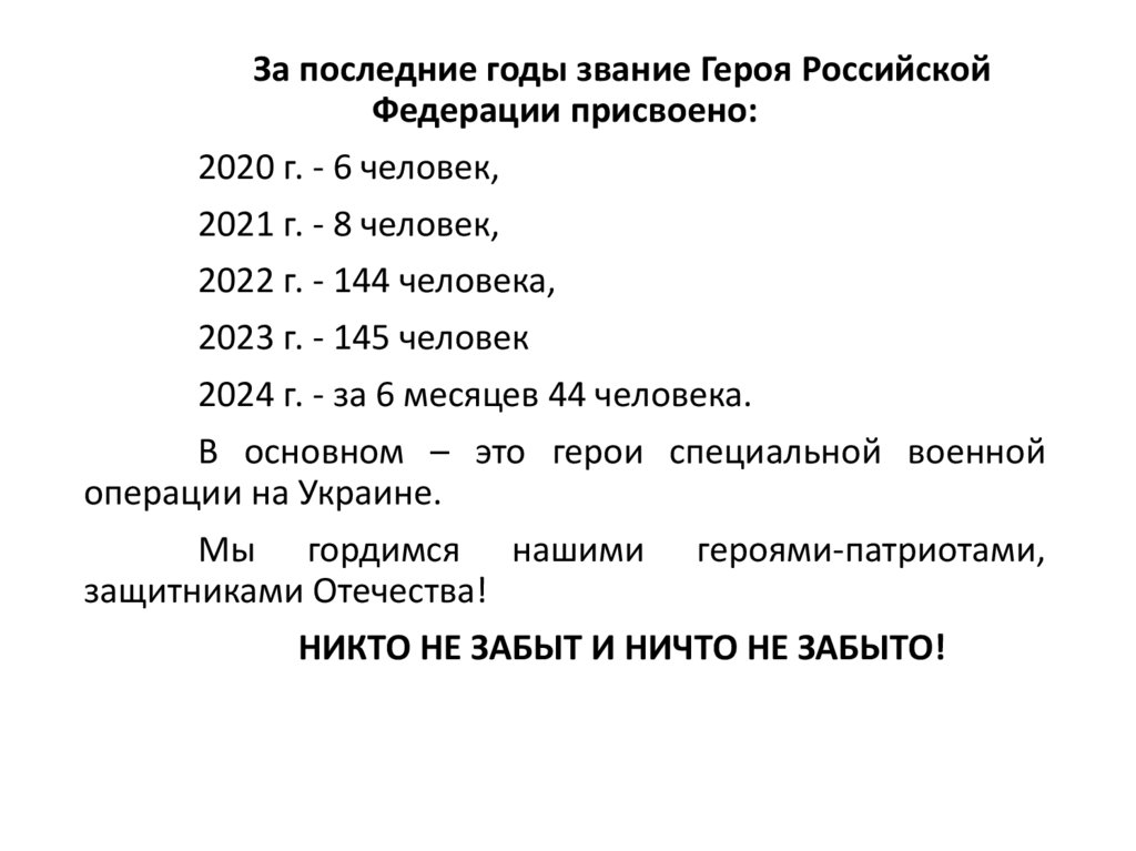 За последние годы звание Героя РоссийскойФедерации присвоено: