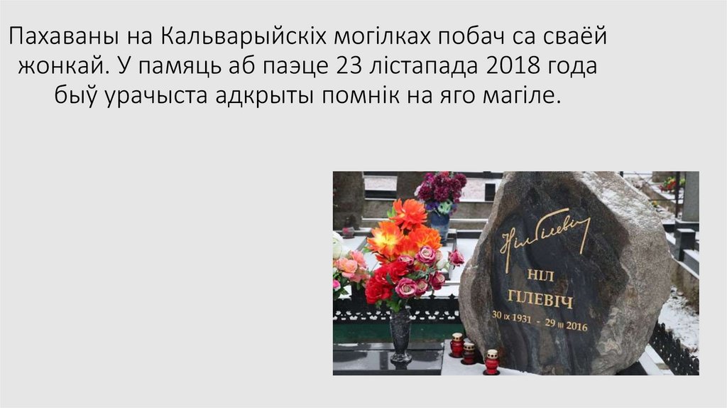 Пахаваны на Кальварыйскіх могілках побач са сваёйжонкай. У памяць аб паэце 23 лістапада 2018 года