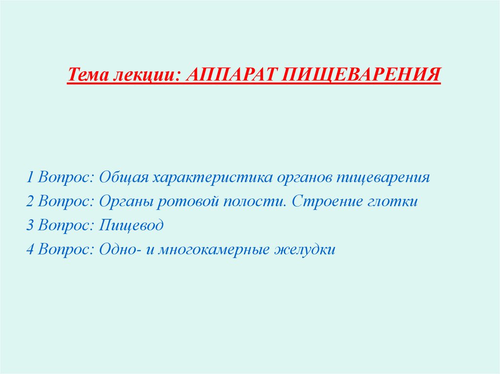 1. Тема лекции: АППАРАТ ПИЩЕВАРЕНИЯ
