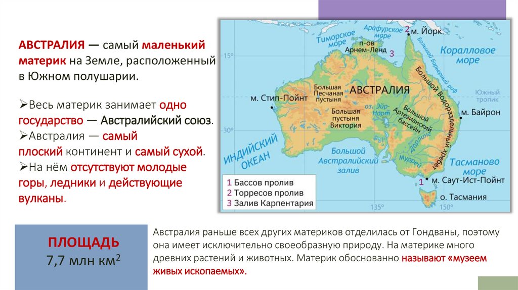 АВСТРАЛИЯ — самый маленькийматерик на Земле, расположенный