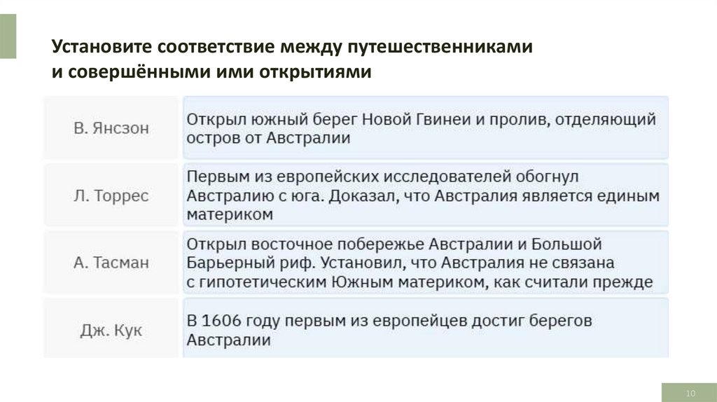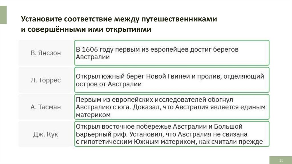 Установите соответствие между путешественникамии совершёнными ими открытиями