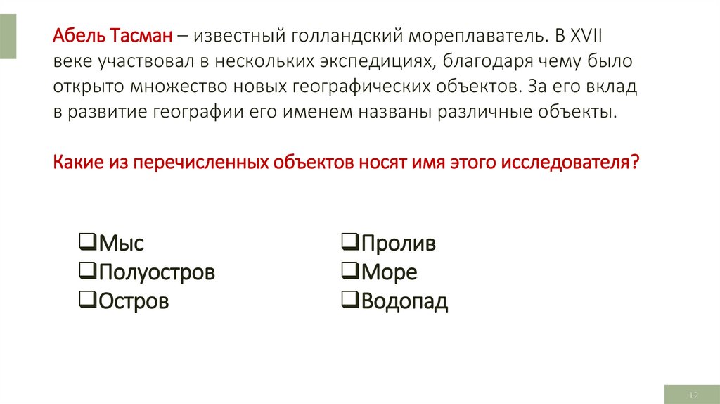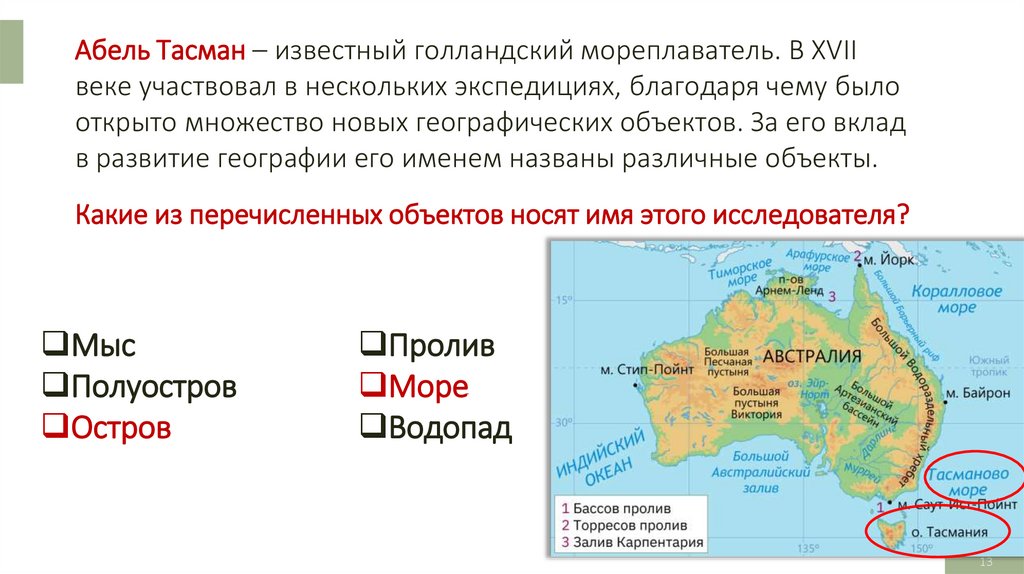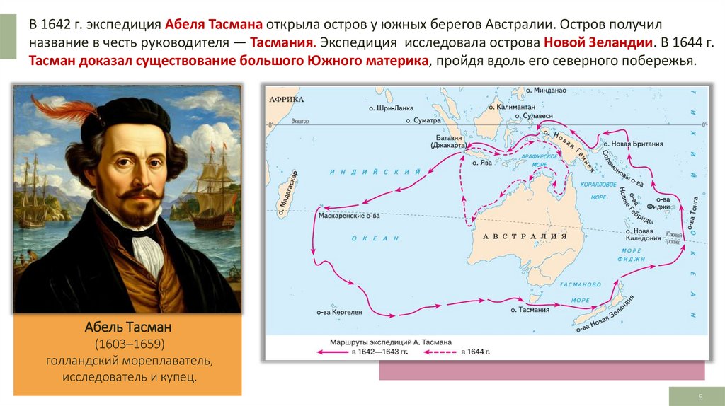 Абель Тасман – известный голландский мореплаватель. В XVIIвеке участвовал в нескольких экспедициях, благодаря чему было
