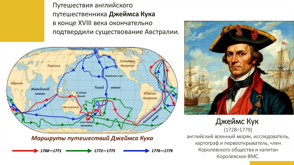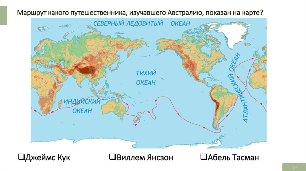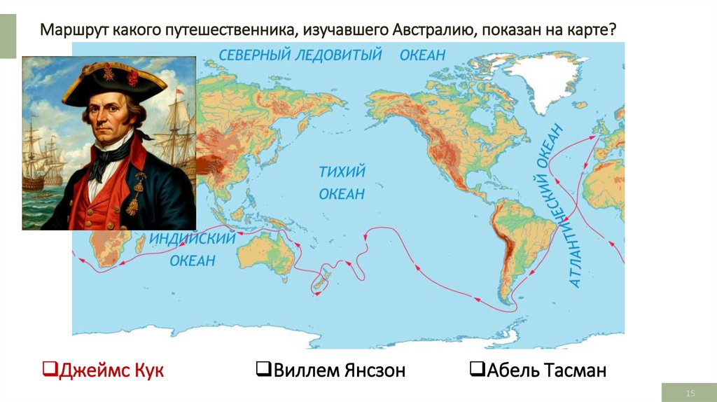 Маршрут какого путешественника, изучавшего Австралию, показан на карте?Джеймс Кук