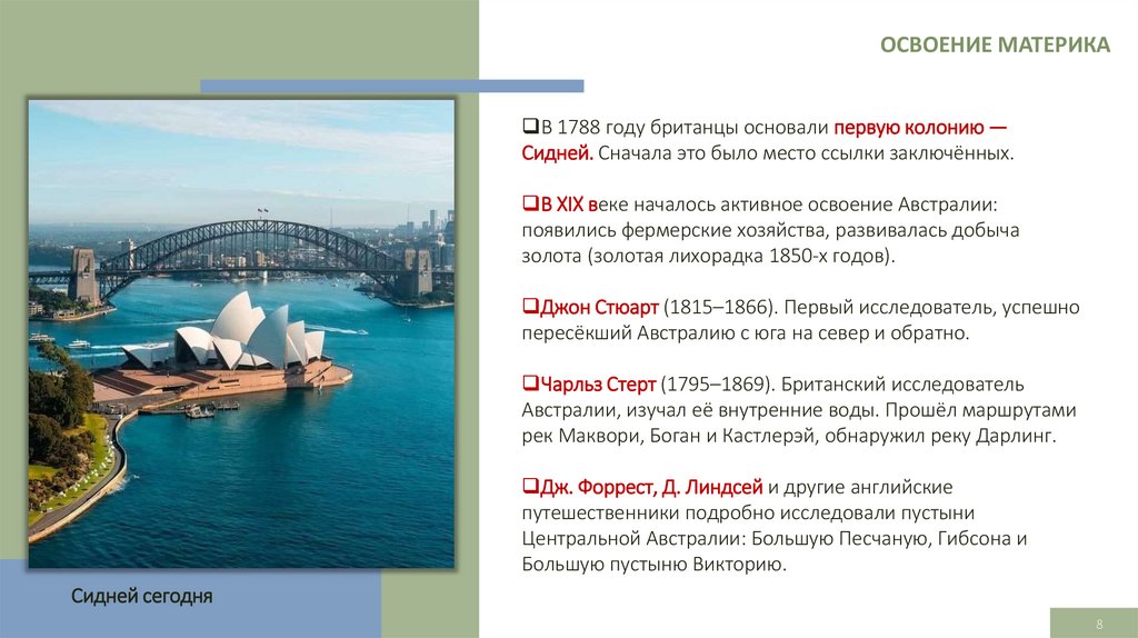 ОСВОЕНИЕ МАТЕРИКАВ 1788 году британцы основали первую колонию —