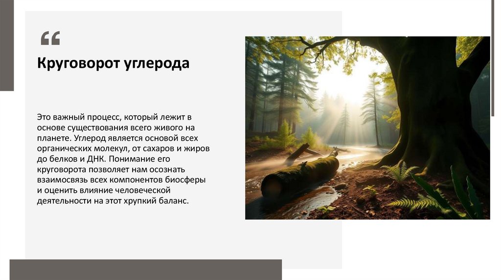 Круговорот углеродаЭто важный процесс, который лежит в