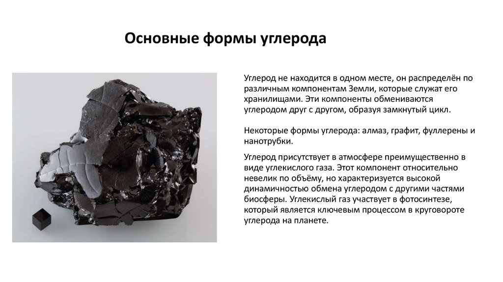 Основные формы углеродаУглерод не находится в одном месте, он распределён по