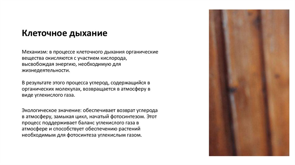 Клеточное дыханиеМеханизм: в процессе клеточного дыхания органические