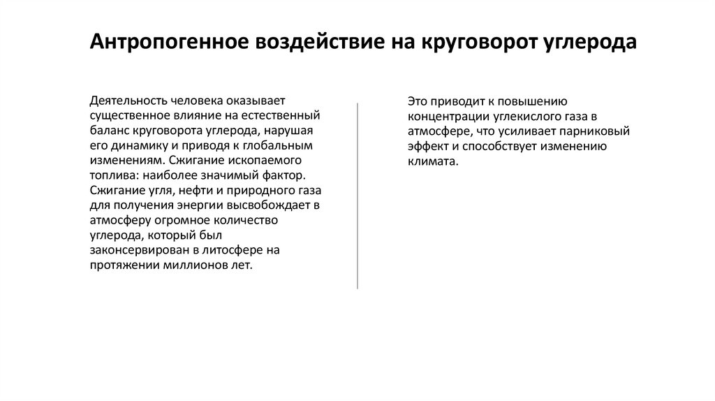 Антропогенное воздействие на круговорот углеродаДеятельность человека оказывает
