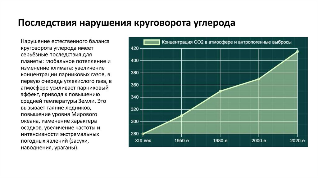 Последствия нарушения круговорота углеродаНарушение естественного баланса