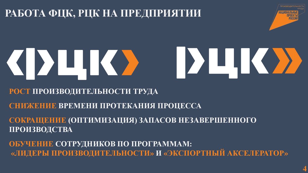 РАБОТА ФЦК, РЦК НА ПРЕДПРИЯТИИРОСТ ПРОИЗВОДИТЕЛЬНОСТИ ТРУДА