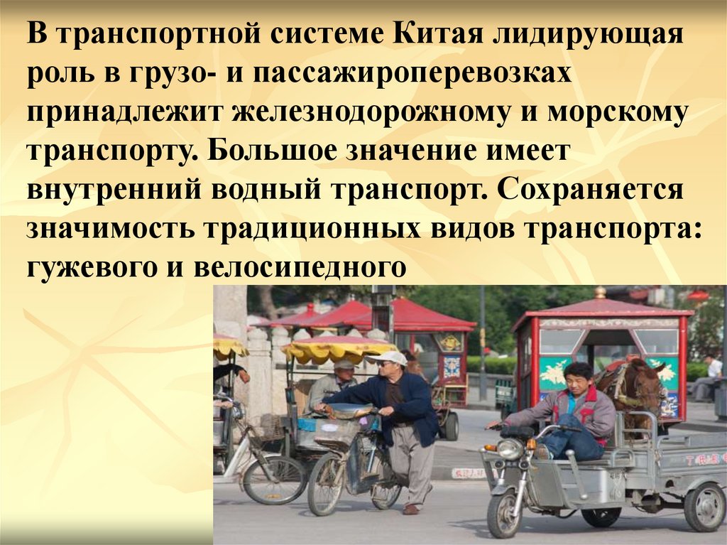 В транспортной системе Китая лидирующаяроль в грузо- и пассажироперевозках