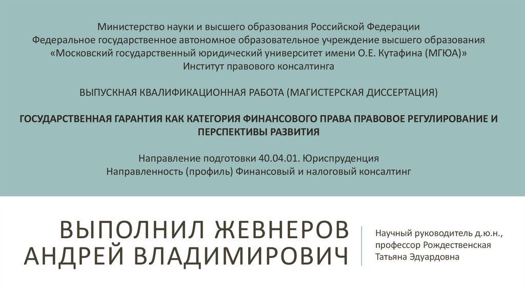 ВЫПУСКНАЯ КВАЛИФИКАЦИОННАЯ РАБОТА (МАГИСТЕРСКАЯ ДИССЕРТАЦИЯ)