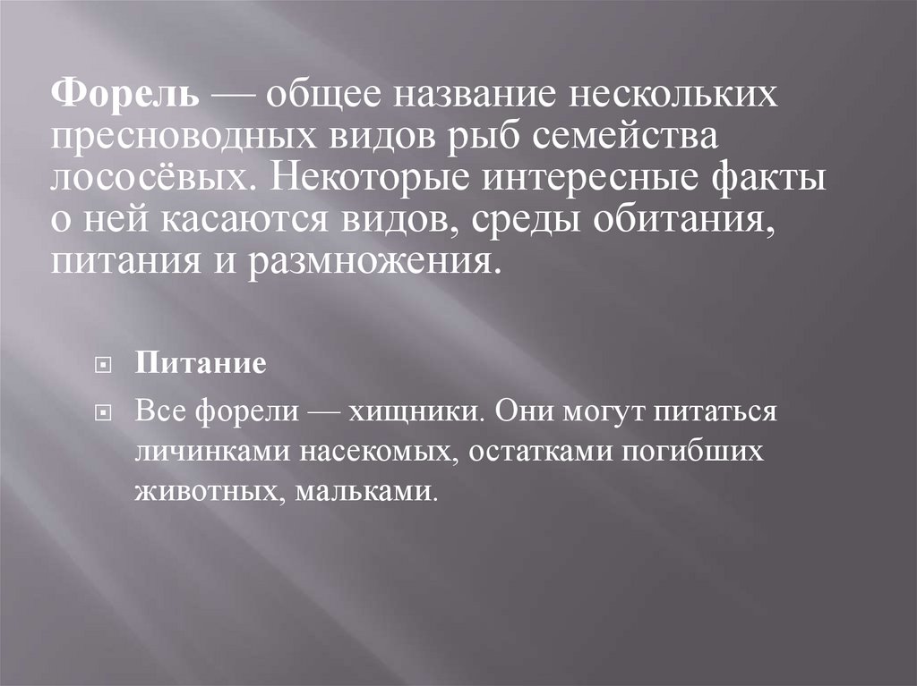Форель — общее название несколькихпресноводных видов рыб семейства