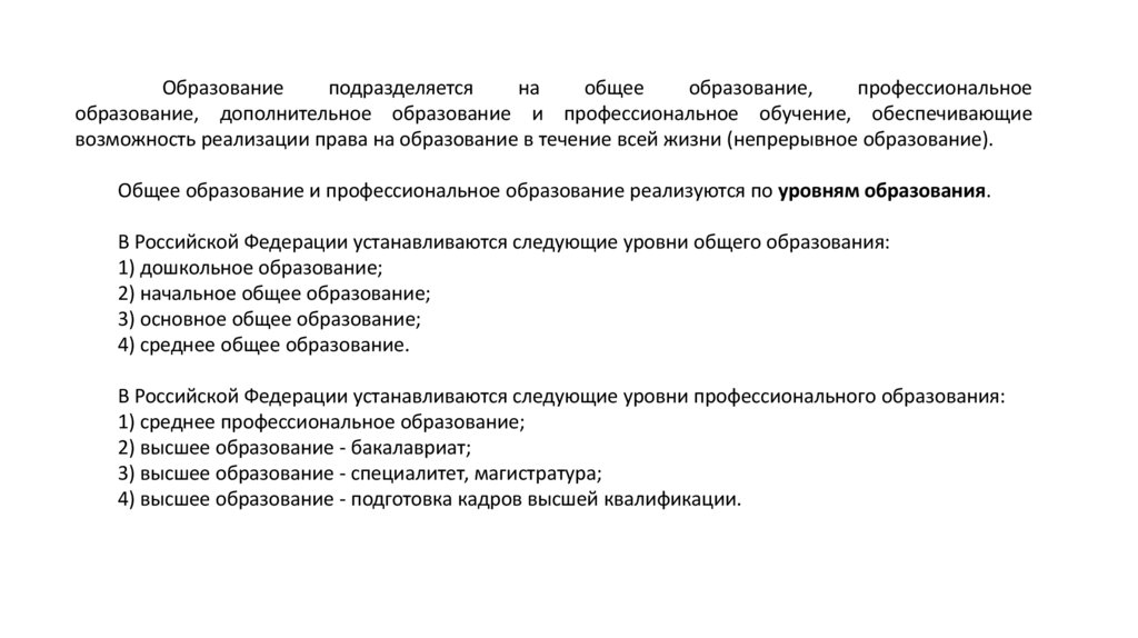 образование - единый целенаправленный процесс воспитания и обучения, являющийся общественно