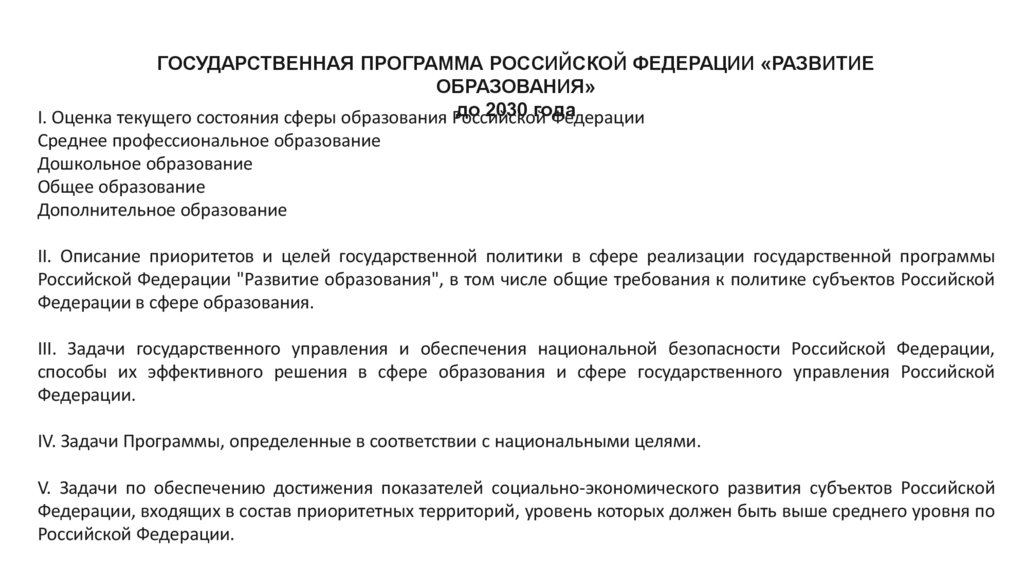 ГОСУДАРСТВЕННАЯ ПРОГРАММА РОССИЙСКОЙ ФЕДЕРАЦИИ «РАЗВИТИЕОБРАЗОВАНИЯ»