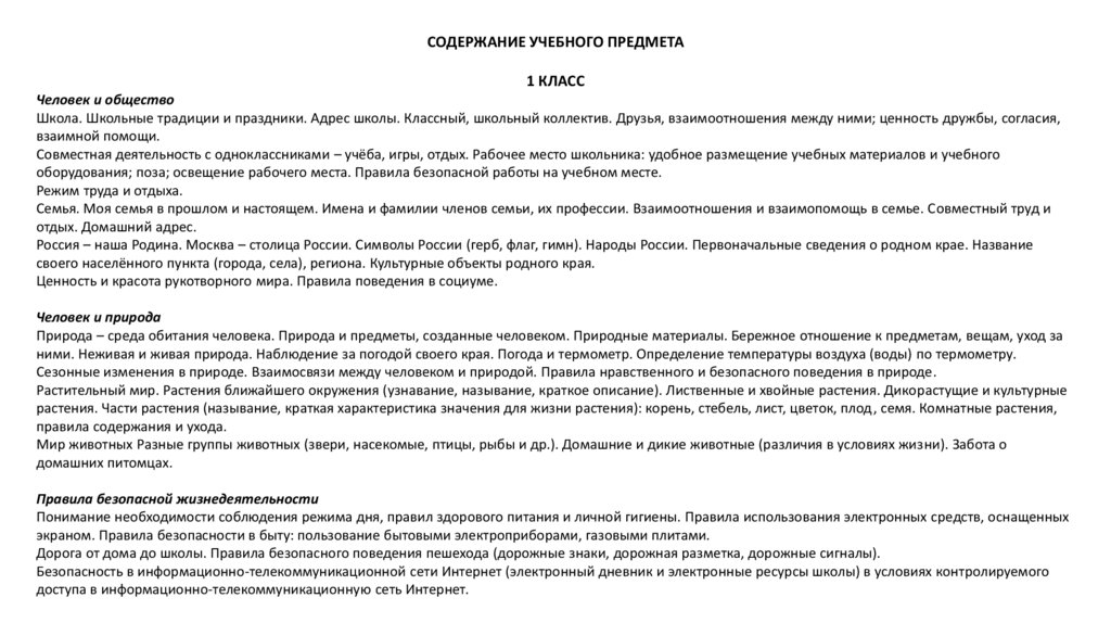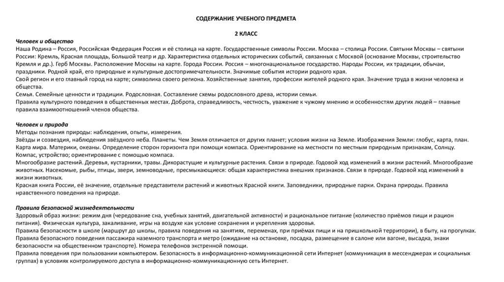 СОДЕРЖАНИЕ УЧЕБНОГО ПРЕДМЕТА2 КЛАСС