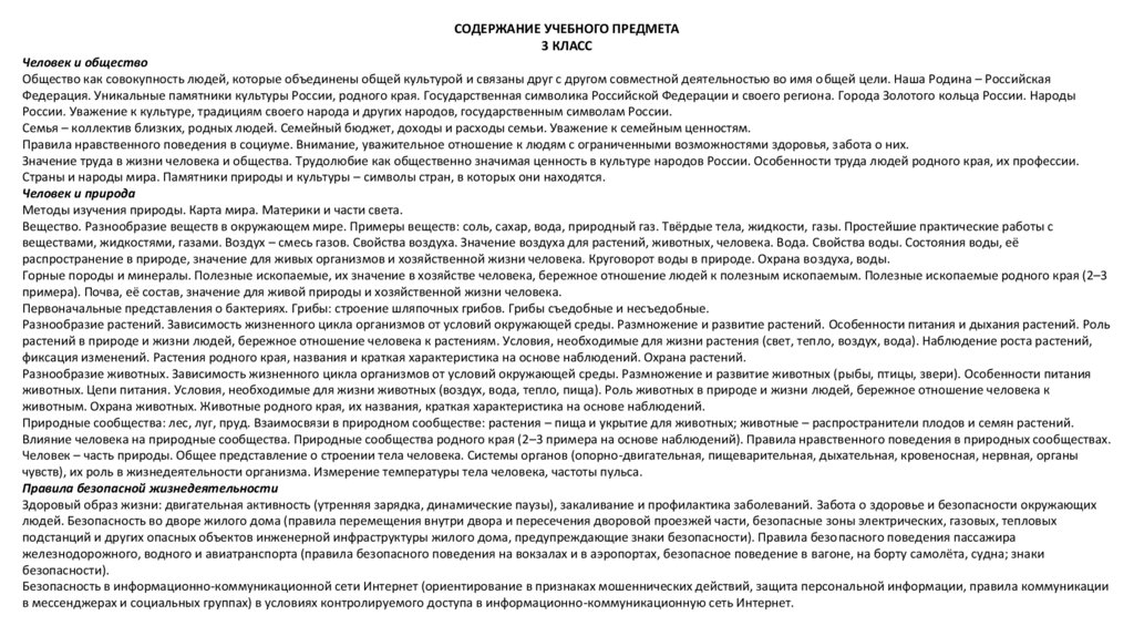 СОДЕРЖАНИЕ УЧЕБНОГО ПРЕДМЕТА3 КЛАСС