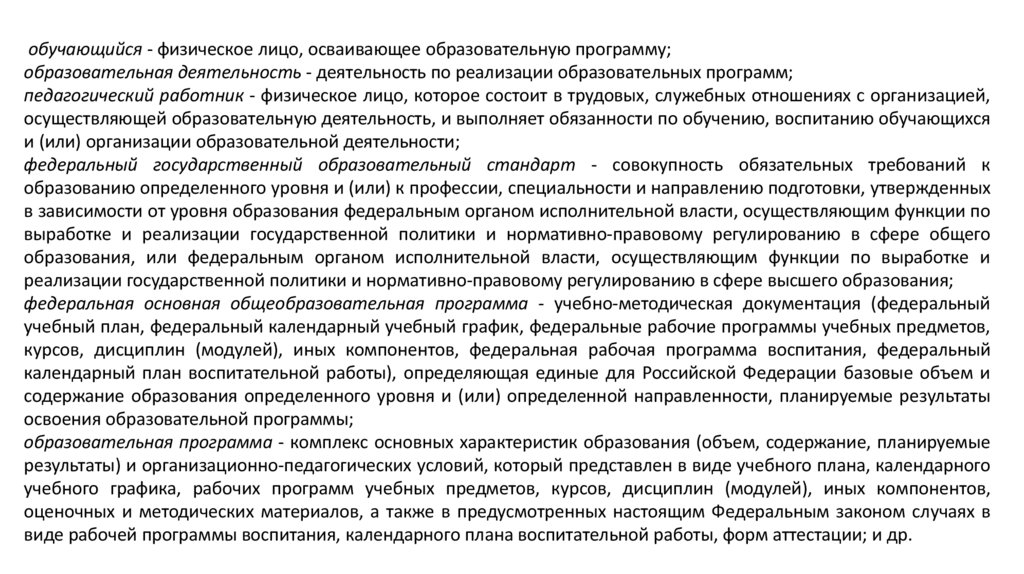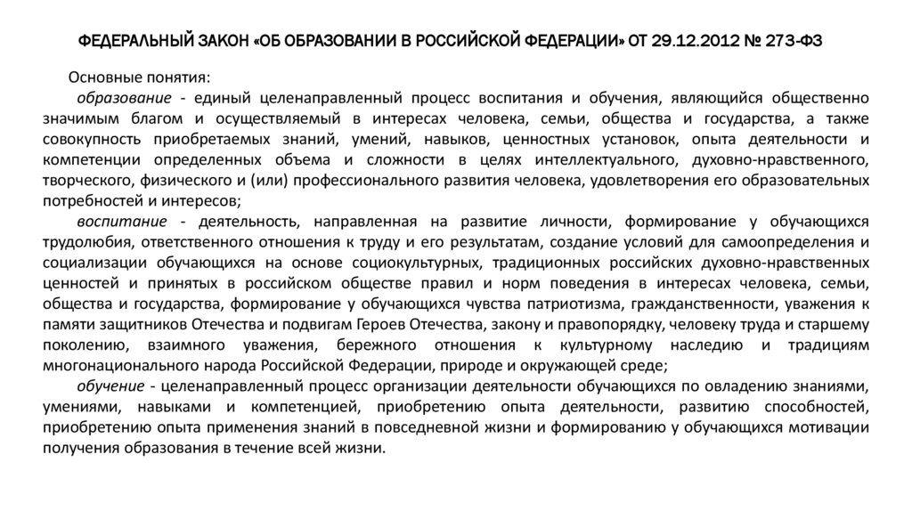 ФЕДЕРАЛЬНЫЙ ЗАКОН «ОБ ОБРАЗОВАНИИ В РОССИЙСКОЙ ФЕДЕРАЦИИ» ОТ 29.12.2012 № 273-ФЗОсновные понятия: