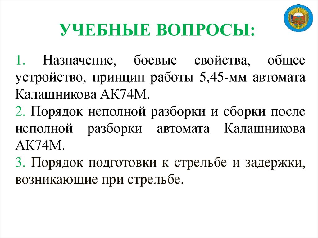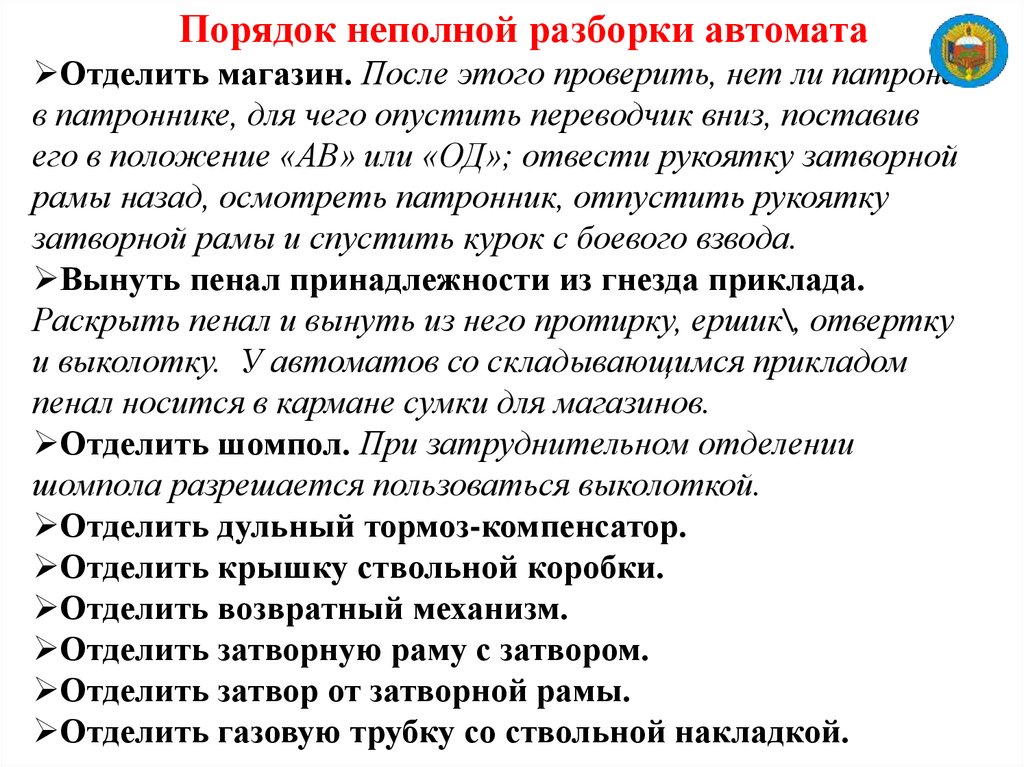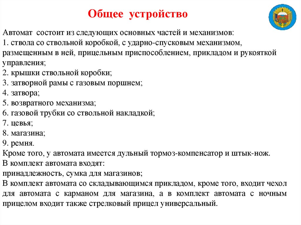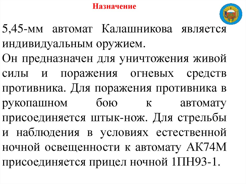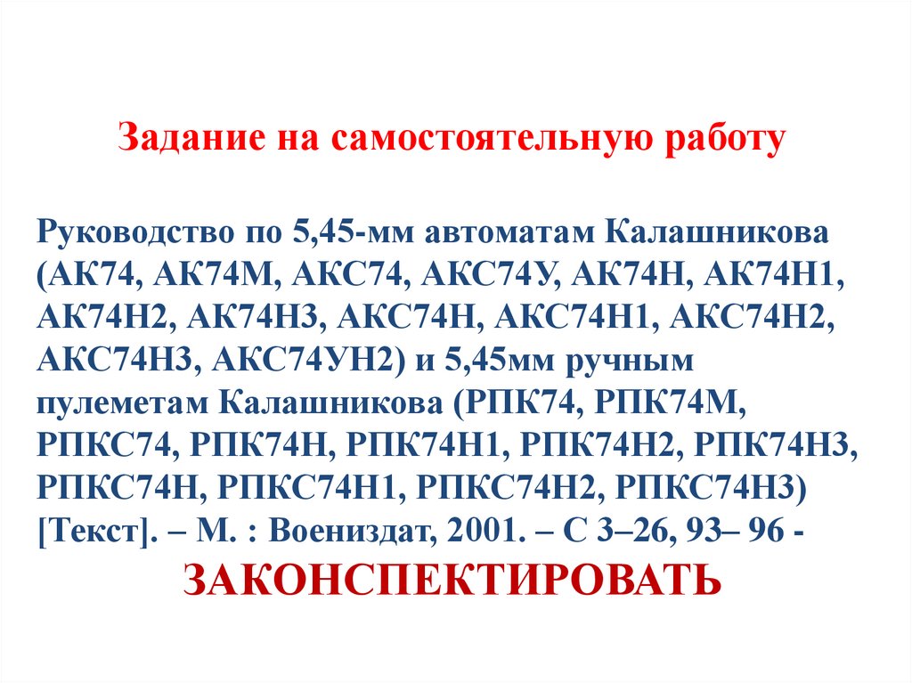Задание на самостоятельную работуРуководство по 5,45-мм автоматам Калашникова
