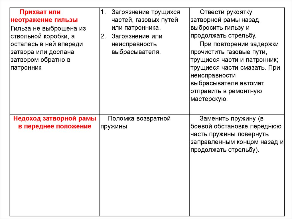 смазки (отсутствует или малый поломке или износе ударноспускового