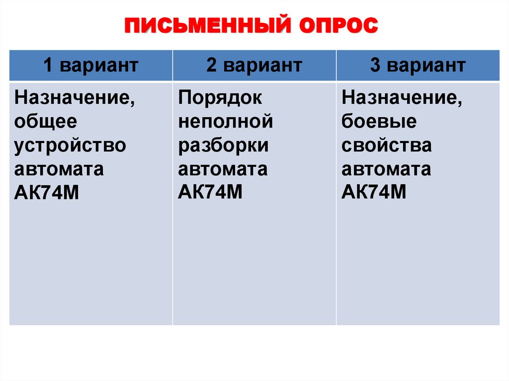 ПИСЬМЕННЫЙ ОПРОС1 вариант
