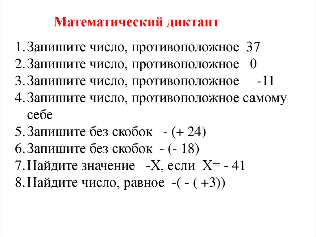 Математический диктант1.Запишите число, противоположное 37