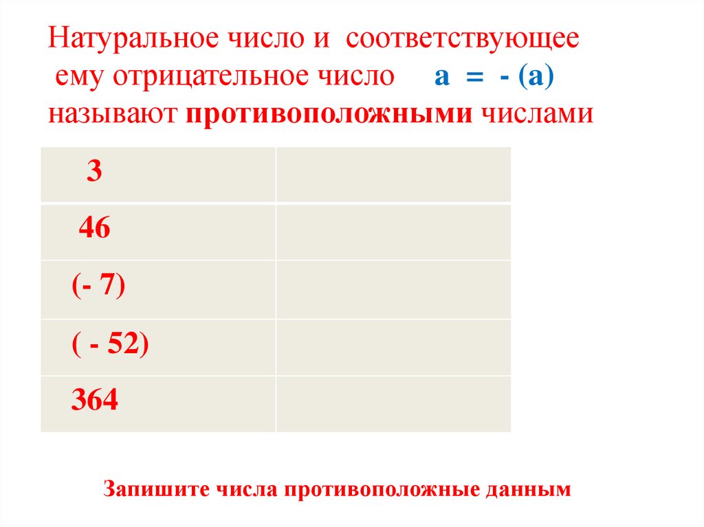 Натуральные числа,противоположные им