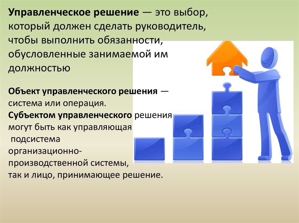 Управленческое решение — это выбор,который должен сделать руководитель,