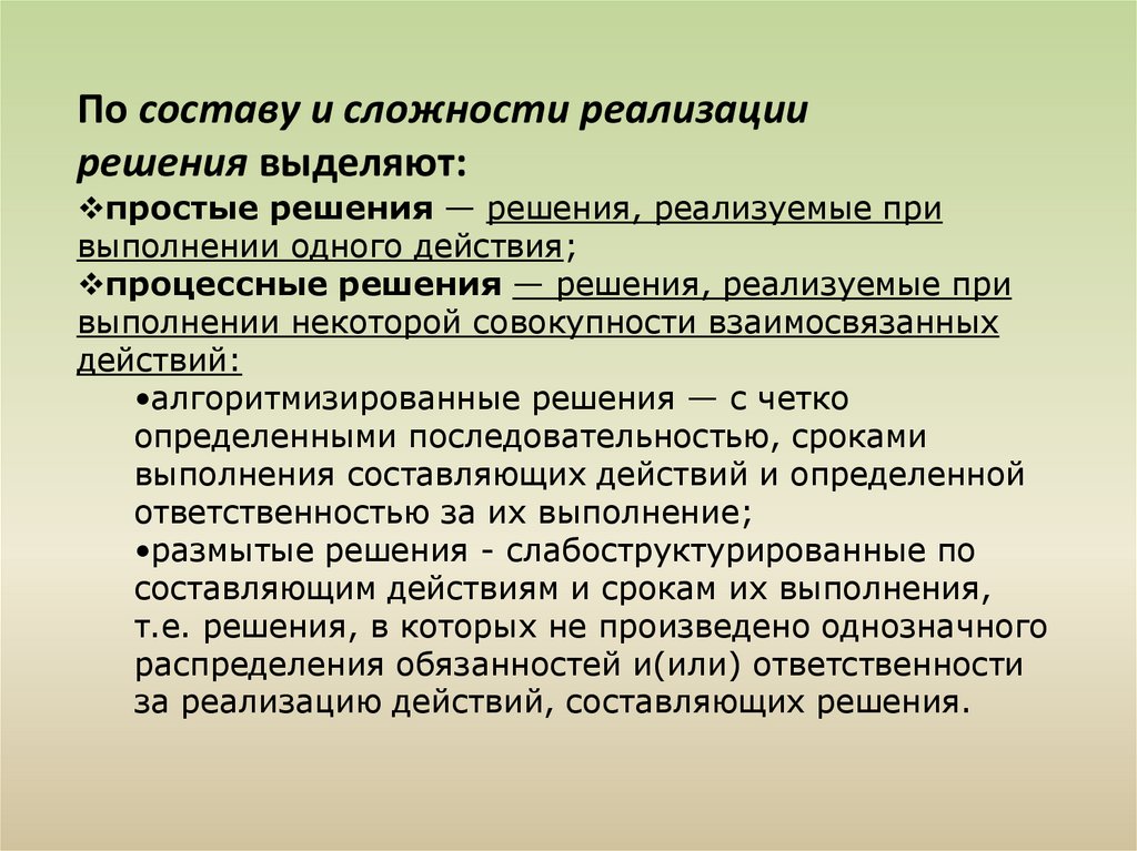 •Запрограммированное решение - есть результат реализации определенной