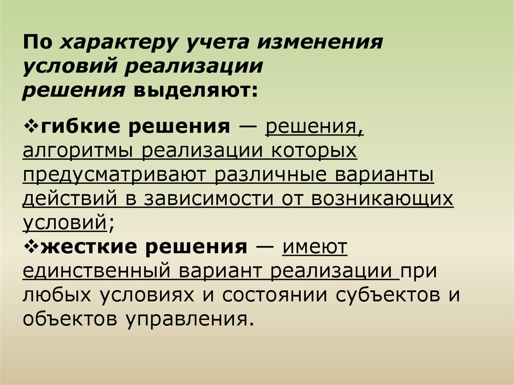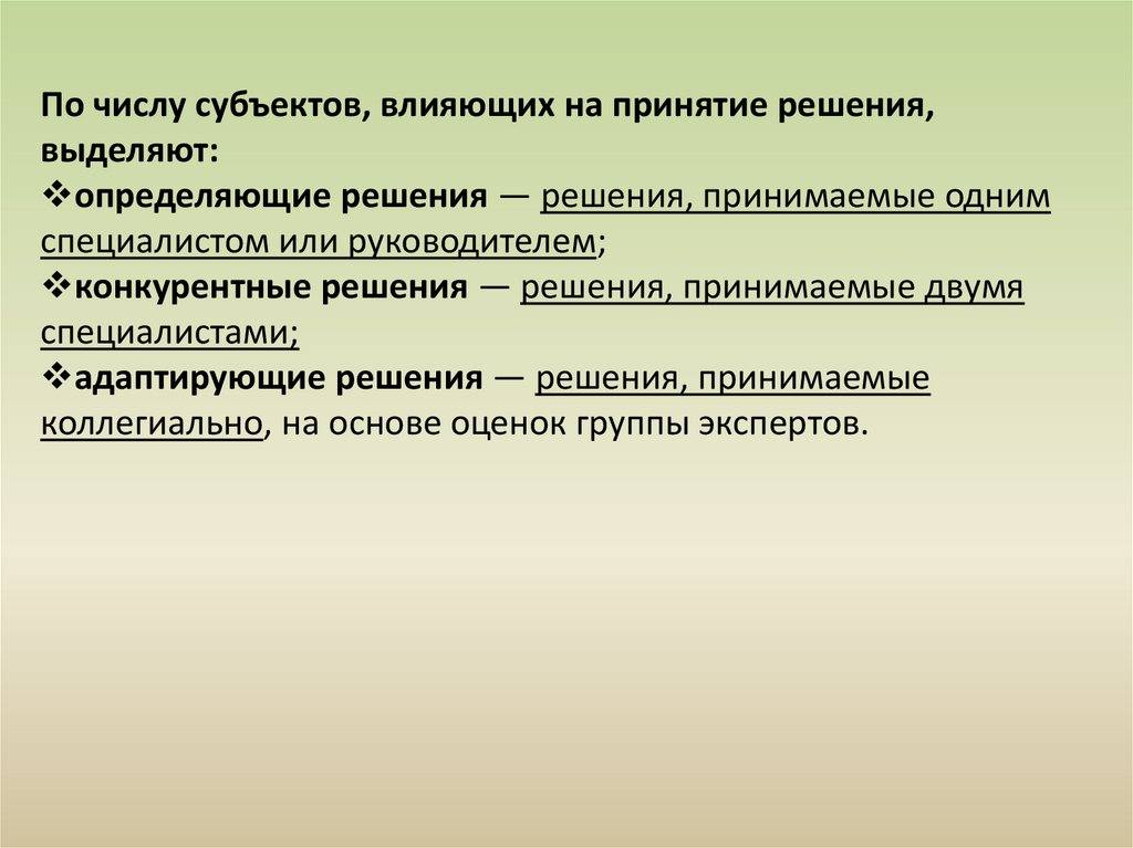 В зависимости от базиса, положенного в основу принятиярешения, различают: