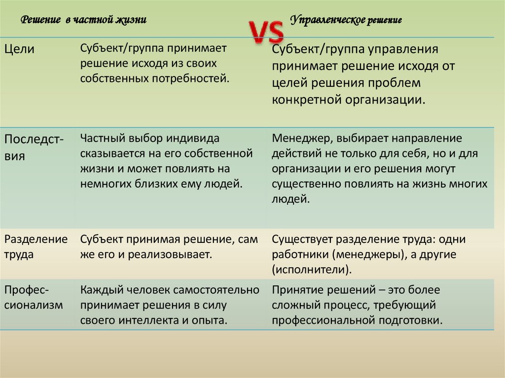 Решение в частной жизниУправленческое решение