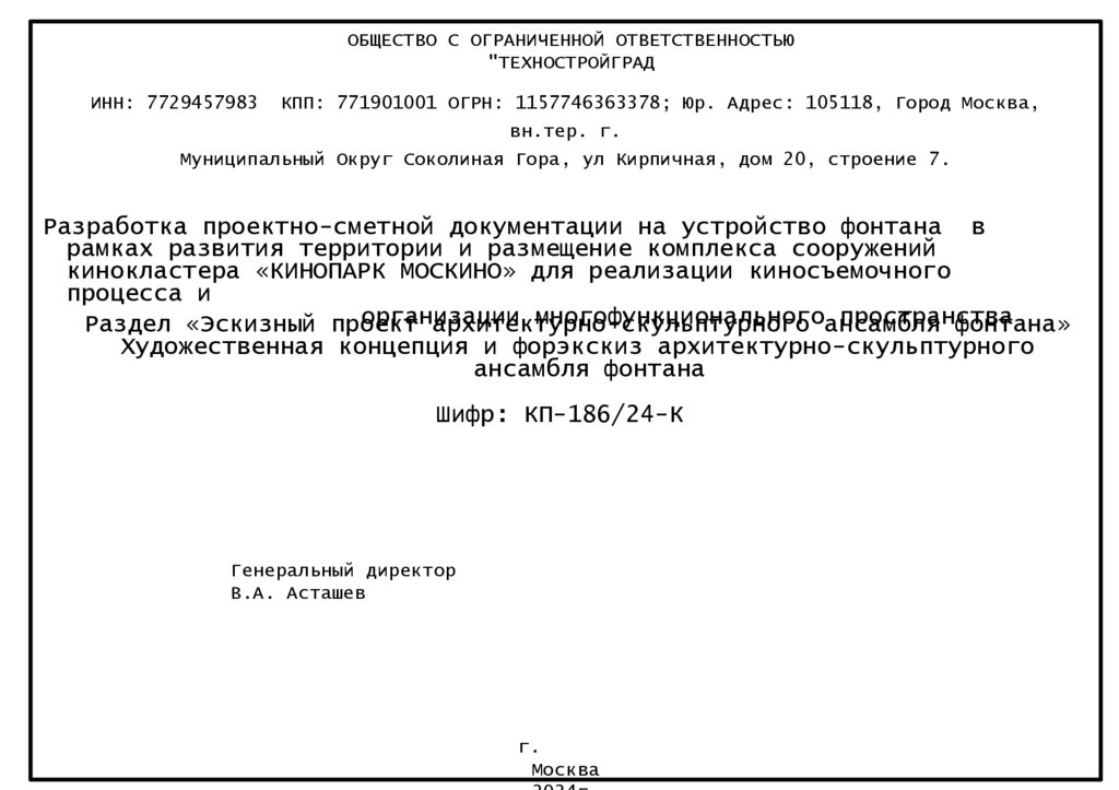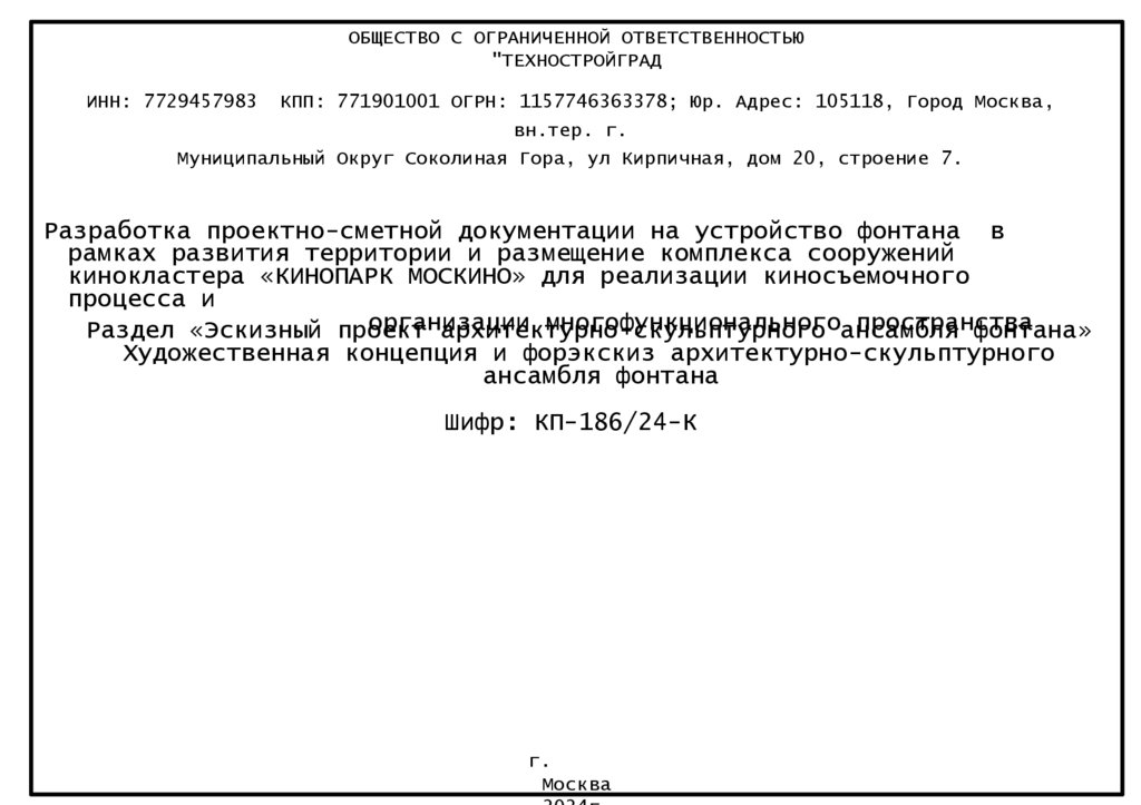 Устройство фонтана в рамках развитиятерритории и размещение комплекса