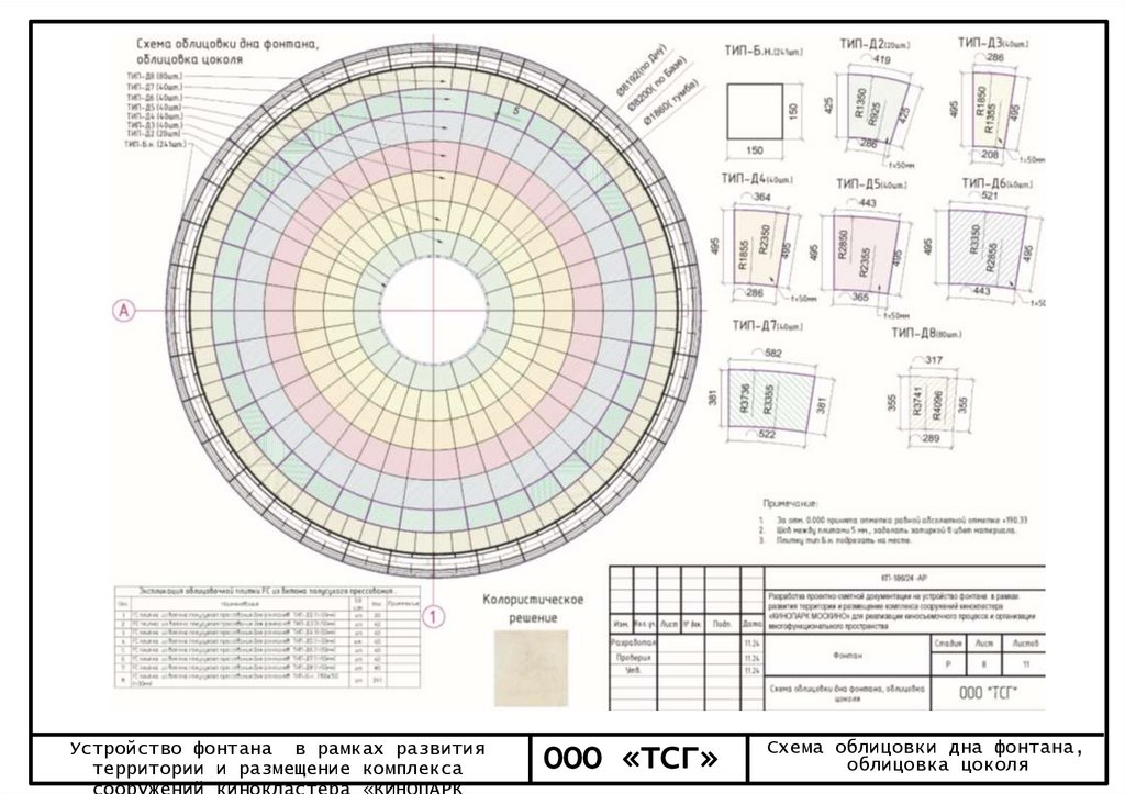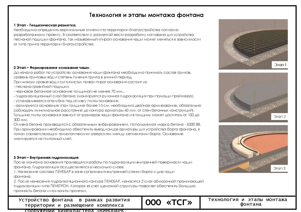 песчаной подушки фонтана. Так называемый «пирог» основания чаши может меняться в зависимости
