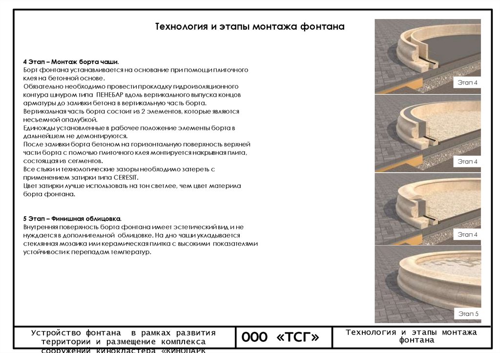 Технология и этапы монтажа фонтана4 Этап – Монтаж борта чаши.