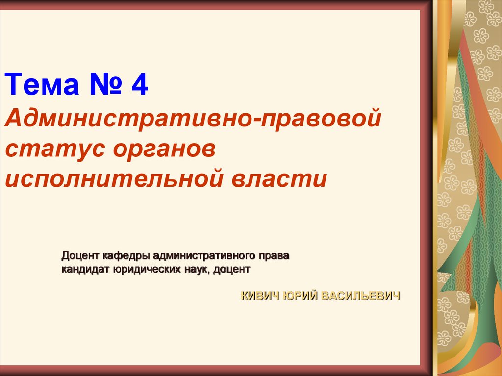 1. Тема № 4 Административно-правовой статус органов исполнительной власти