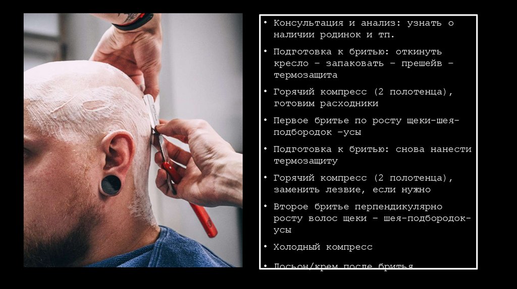 • Первое бритье по росту щеки-шеяподбородок –усы