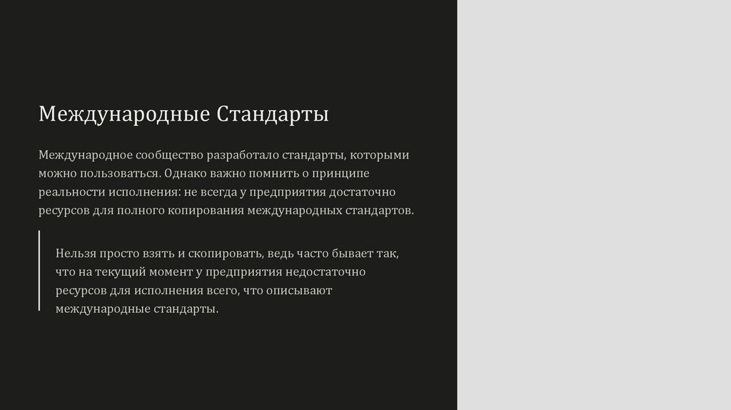 Международные СтандартыМеждународное сообщество разработало стандарты, которыми