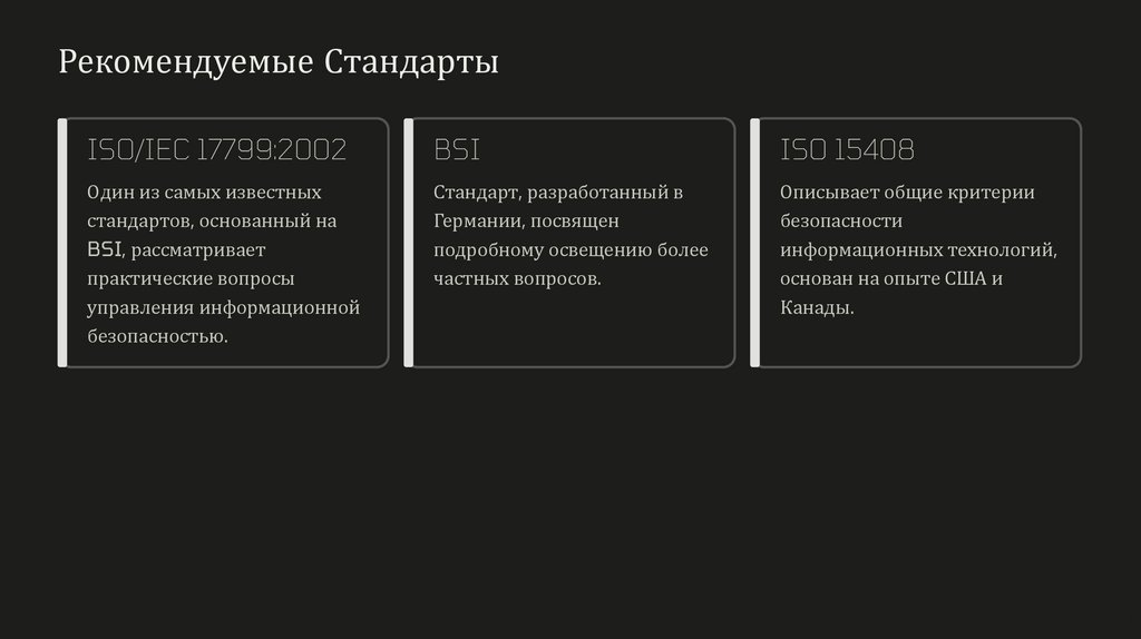 Рекомендуемые СтандартыISO/IEC 17799:2002