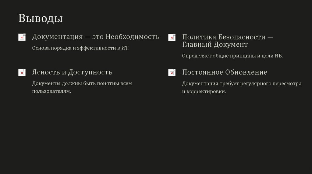 ВыводыДокументация — это Необходимость