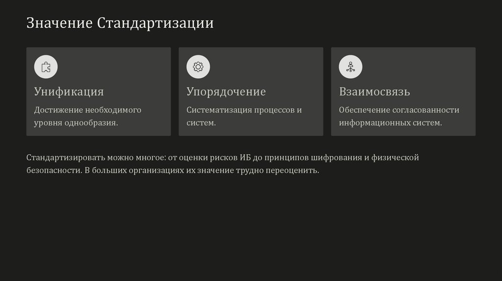 Стандартизировать можно многое: от оценки рисков ИБ до принципов шифрования и физической