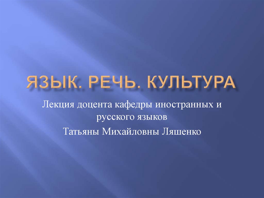 Язык. Речь. Культура