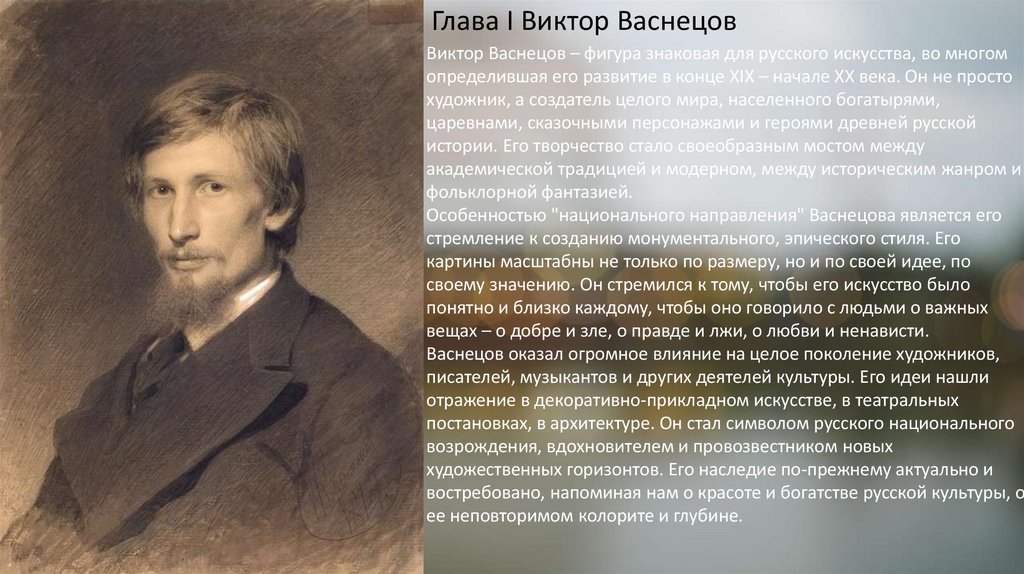 Глава I Виктор ВаснецовВиктор Васнецов – фигура знаковая для русского искусства, во многом