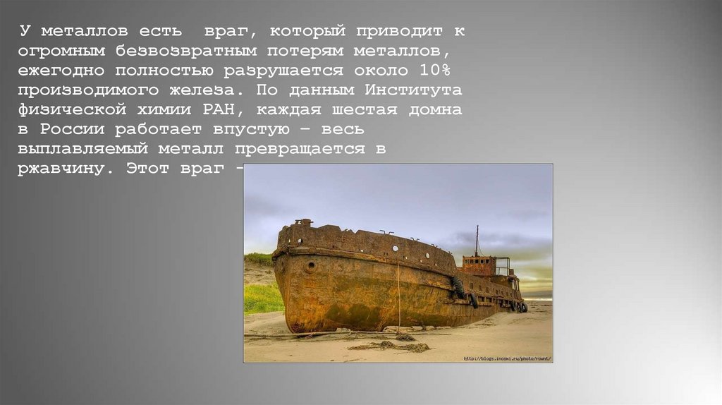 У металлов есть враг, который приводит когромным безвозвратным потерям металлов,