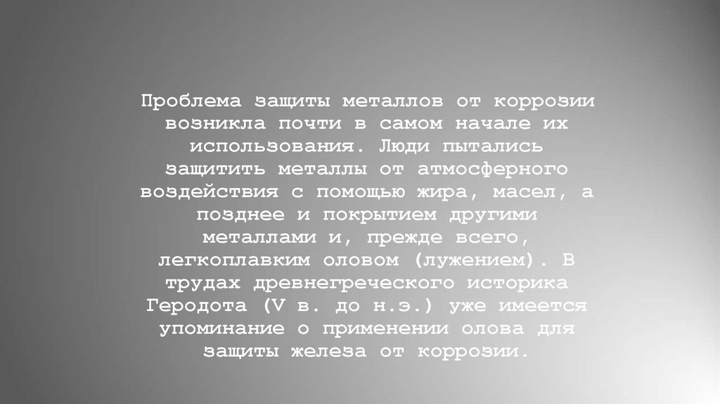 Проблема защиты металлов от коррозиивозникла почти в самом начале их