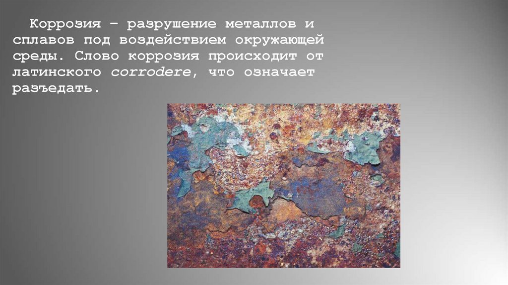 среды. Слово коррозия происходит от