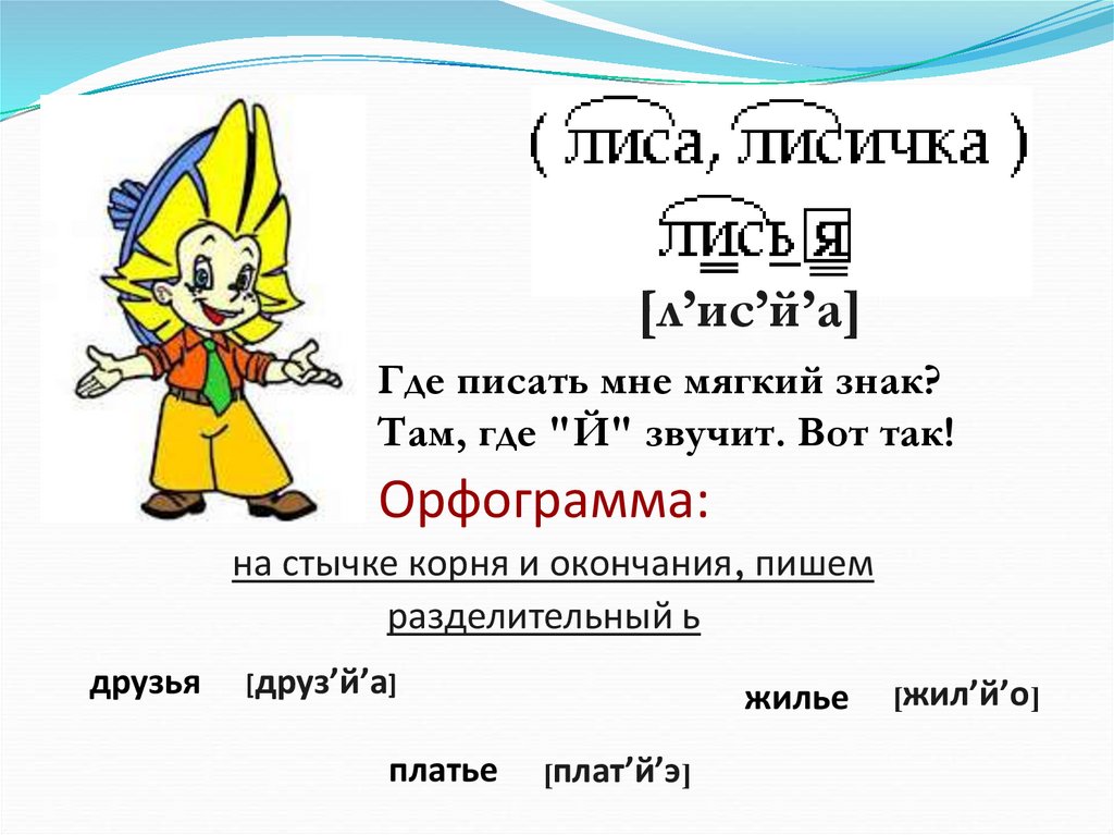 Какие звуки разделяет мягкий знак? [Л’] [Й’]