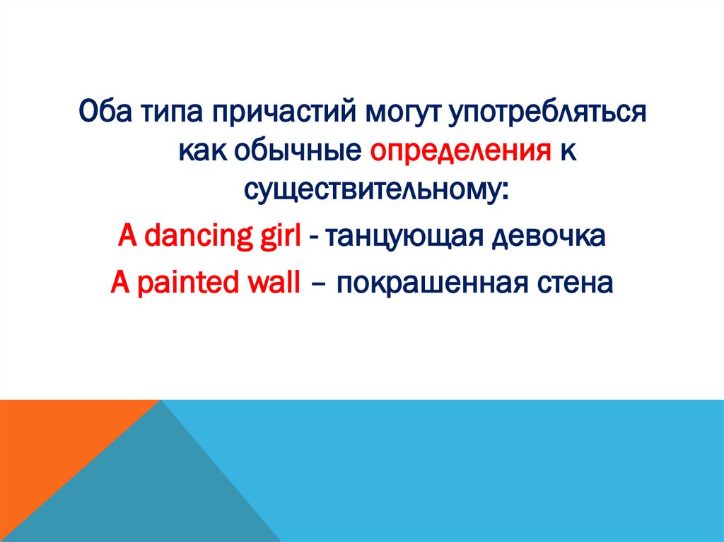 В АНГЛИЙСКОМ ЯЗЫКЕ СУЩЕСТВУЕТ 2 ОСНОВНЫХПРИЧАСТИЯ: