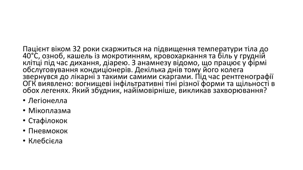 клітці під час дихання, діарею. З анамнезу відомо, що працює у фірмі