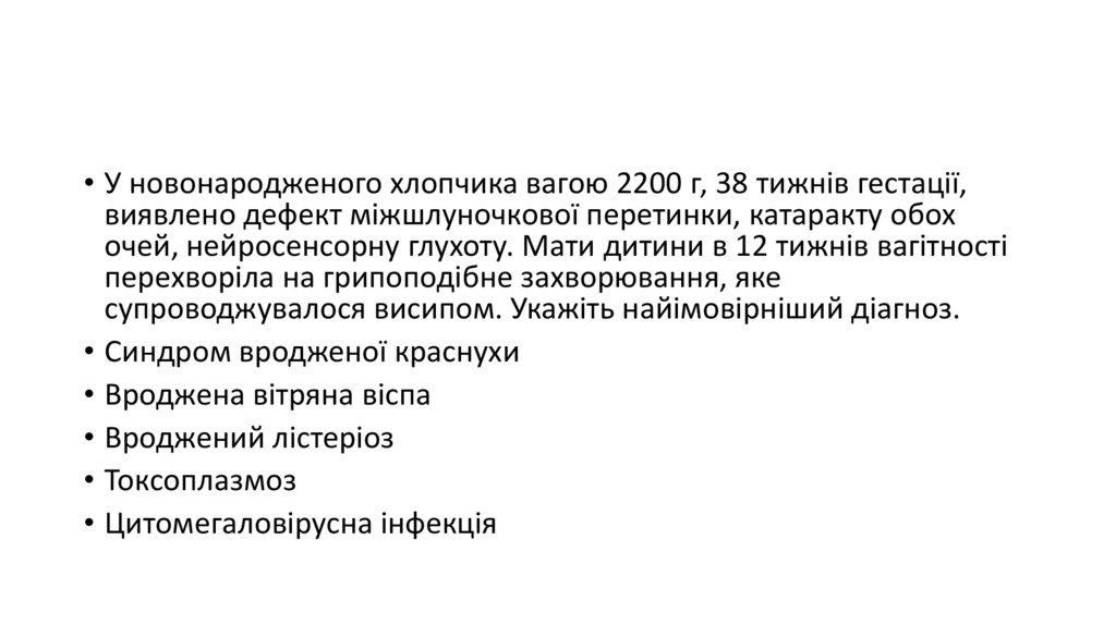 • Синдром вродженої краснухи